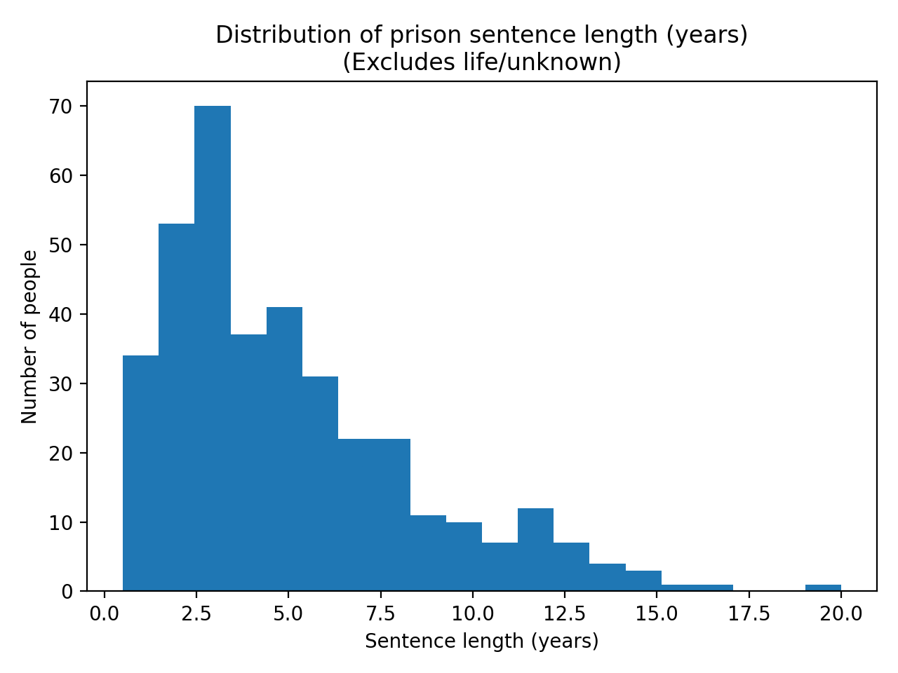 We don't include life sentences or sentences that are unknown in the graph above. There were, however, reports of deaths while in detention, though they were fewer in number. This graph illustrates the severity of charges imposed on individuals accused of political crimes.